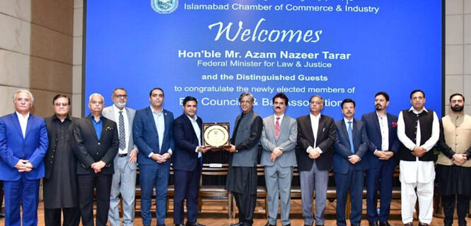 اس موقع پر خطاب کرتے ہوئے اسلام آباد چیمبر آف کامرس اینڈ انڈسٹری کے صدر احسن ظفر بختاوری نے کہا کہموجودہ معاشی صورتحال دن بدن خراب سے خراب تر ہوتی جا رہی ہے اس لئے ضروری ہے کہ ملک کی تمام سیاسی جماعتیں ملک کی سالمیت کیلئے ایک میثاق معیشت پر متفق ہوں جبکہ اسلام آباد چیمبر آف کامرس اس مقصد کیلئے ان کو ایک پلیٹ فارم مہیا کرنے کیلئے تیار ہے۔ انہوں نے کہا کہ صرف اس ایک اقدام سے ملک معاشی اور سیاسی استحکام کی طرف بڑھنا شروع ہو جائے گا۔ انہوں نے کہا کہ عدالتوں پر مقدمات کا بوجھ بڑھتا جا رہا ہے لہذا ضرورت اس بات کی ہے کہ ثالثی کونسلوں کے طریقہ کار کو فروغ دیا جائے تاکہ تجارتی تنازعات کو عدالتوں سے باہر جلد حل کیا جائے جس سے کاروباری سرگرمیوں کو بہتر فروغ ملے گا۔ انہوں نے کہا کہ بار کونسل اور ایسوسی ایشن چیمبر میں اپنے سہولت ڈیسک قائم کر کے تجارتی تنازعات کے فوری حل میں تاجر برادری کی مدد کریں۔ انہوں نے مطالبہ کیا کہ کاروباری سرگرمیوں، سرمایہ کاری اور برآمدات کے بہتر فروغ کیلئے حکومت مزید سازگار پالیسیاں تشکیل دے۔ انہوں نے کہا کہ چیمبر بار کونسلز اور ایسوسی ایشنز کے ساتھ مل کر کاروباری اور وکلاء برادری کے اہم مسائل حل کرانے میں تعاون کے لیے تیار ہے۔