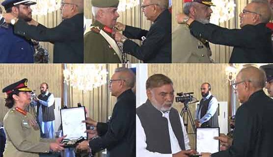 صدر مملکت ڈاکٹر عارف علوی نے پاک فوج، پاک فضائیہ اور پاکستان نیوی سے تعلق رکھنے والے حاضر سروس افسران کو بھی اُن کی خدمات پراعزازات سے نوازا۔