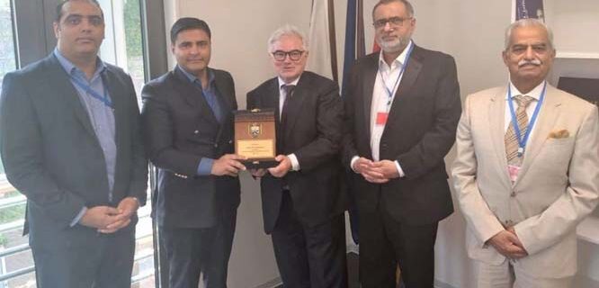 اسلام آباد (روزنامہ قوم انٹرنیشنل)اسلام آباد چیمبر آف کامرس اینڈ انڈسٹری کے صدر احسن ظفر بختاوری کی قیادت میں ایک وفد نے پاکستان میں تعینات جرمنی کے سفیر الفریڈ گراناس کے ساتھ ان کے دفتر میں ملاقات کی اور پاکستان و جرمنی کے درمیان باہمی تجارتی اور اقتصادی تعلقات کو مزید بہتر بنانے کے امور پر تبادلہ خیال کیا۔