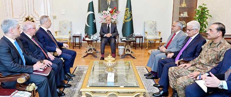 شہباز شریف سے ترکیہ کے وزیر خارجہ ہاکان فیدان اور قومی دفاع کے وزیر یاسر گلر نے ملاقات کی جہاں نائب وزیراعظم اور وزیر خارجہ اسحاق ڈار، وزیر دفاع خواجہ آصف، فیلڈ مارشل عاصم منیر، قومی سلامتی کے مشیر لیفٹیننٹ جنرل محمد عاصم ملک اور دیگر اعلیٰ حکام بھی موجود تھے۔