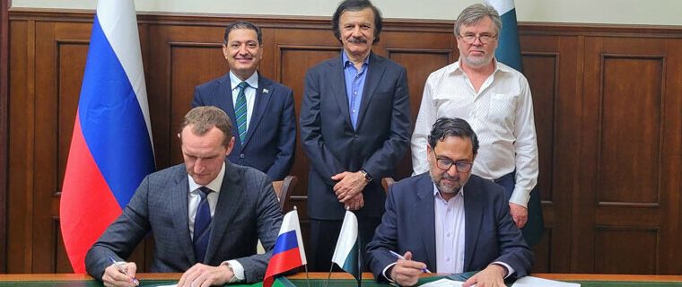 پاکستان کے سیکرٹری صنعت و پیداوار سیف انجم اور روس کی انڈسٹریل انجینئرنگ ایل ایل سی کے ڈی جی وادیم ویلیچکو نے معاہدے پر دستخط کیے۔