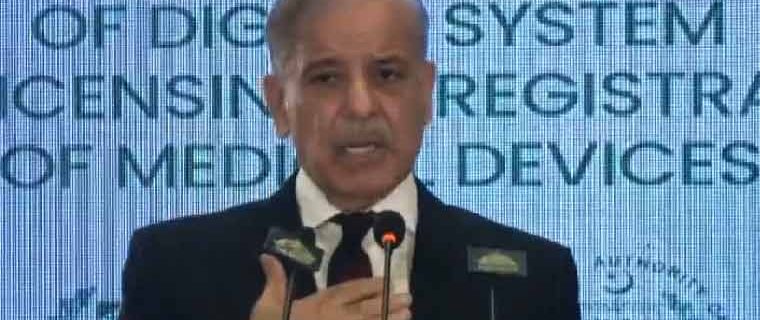 وفاقی دارالحکومت میں طبی آلات کی لائسنسنگ اور رجسٹریشن کے ڈیجیٹل نظام کی افتتاحی تقریب سے خطاب کرتے ہوئے شہباز شریف نے کہا کہ ’میں وفاقی وزیر صحت اور ڈی جی ڈریپ کو دل کی اتھاہ گہرائیوں سے مبارکباد پیش کرتا ہوں کہ آج آپ نے یہاں طبی آلات کی لائسنسنگ اور رجسٹریشن کے لیے نظام واضح کیا ہے، جو بھی اس کام میں شامل تھے، سب کو مبارکباد دیتا ہوں۔