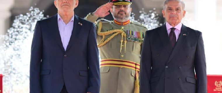 قبل ازیں ایرانی صدر مسعود پزشکیان کا وزیراعظم ہاؤس اسلام آباد پہنچنے پر وزیراعظم شہباز شریف نے پرتپاک استقبال کیا، دونوں رہنماؤں نے گرمجوشی سے مصافحہ کیا۔