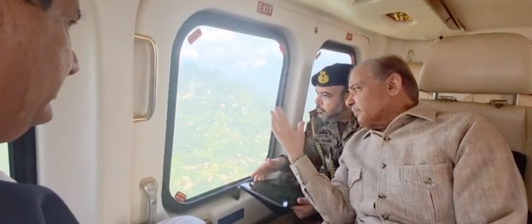 وزیراعظم شہباز شریف نے بونیر اور شانگلہ کے متاثرہ علاقوں میں سیلابی صورتحال اور نقصانات کا فضائی جائزہ لیا، وفاقی وزراء عطاء اللہ تارڑ، امیر مقام اور احسن اقبال بھی وزیراعظم کے ہمراہ ہیں۔