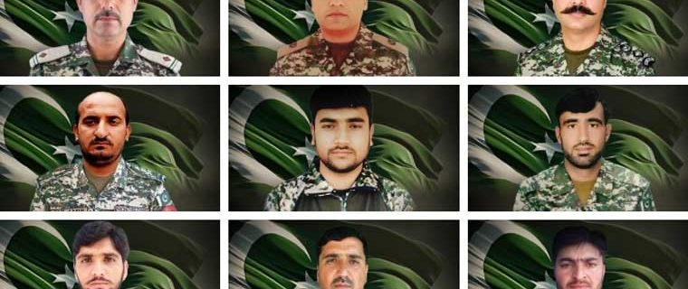 شعبہ تعلقات عامہ کا کہنا ہے کہ لیفٹیننٹ کرنل جنید طارق فرنٹ سے ٹیم کی قیادت کر رہے تھے، شہید ہونے والے دیگر 9 جوانوں میں نائب صوبیدار اعظم گل، نائیک عدیل حسین، نائیک گل امیر شامل ہیں، اس کے علاوہ لانس نائیک شیر خان، لانس نائیک طالش فراز، لانس نائیک ارشاد حسین، سپاہی طفیل خان، سپاہی عاقب علی اور سپاہی محمد زاہد نے بھی جامِ شہادت نوش کیا۔