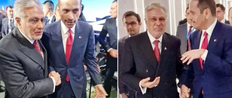 اسلام آباد : نائب وزیراعظم و وزیر خارجہ اسحاق ڈار کی قطر کے وزیراعظم و وزیر خارجہ شیخ محمد بن عبدالرحمان الثانی سے غیر رسمی ملاقات ہوئی ہے۔