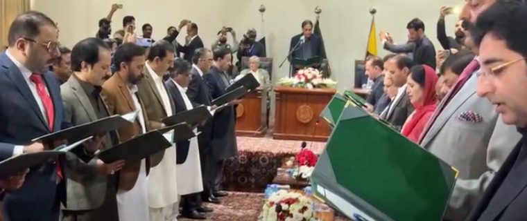 مظفرآباد: آزاد جموں و کشمیر کی 20 رکنی نئی کابینہ نے ایوان صدر مظفر آباد میں حلف اٹھا لیا۔
