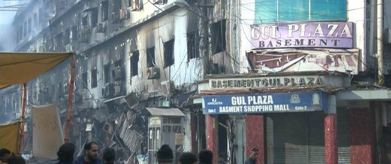 آگ ہفتے کی رات سوا 10 بجے کے قریب گل پلازہ کے گراؤنڈ فلور پر لگی جو دیکھتے ہی دیکھتے تیسری منزل تک پہنچ گئی، اس آگ نے 14 زندگیاں نگل لی ہیں، 30 افراد زخمی ہوئے جبکہ 60 سے زائد افراد تاحال لاپتہ ہیں۔