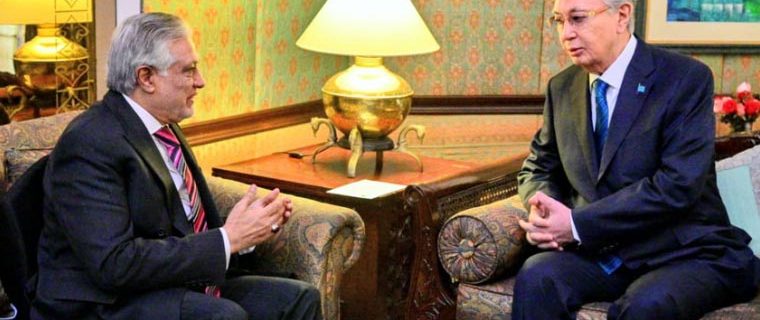 اسحاق ڈار اور قازقستان کے صدر کی ملاقات، دوطرفہ تعاون بڑھانے پر زور