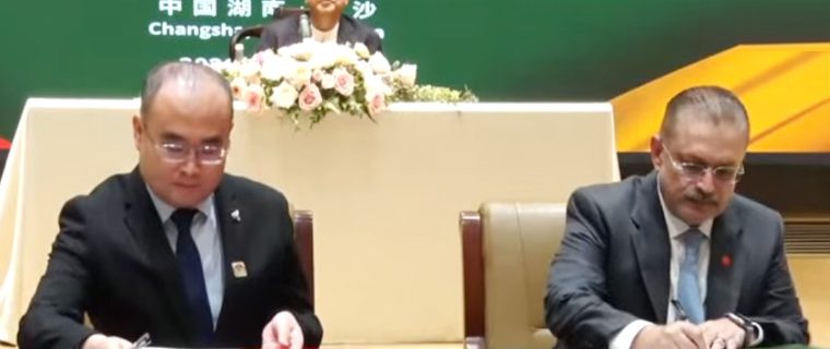 ہونان ٹی گروپ کے پارٹی سیکرٹری و چیئرمین ژو چونگ وانگ اور ہینان جیالونگ انٹرنیشنل ٹریڈٹیکنالوجی کے چیئرمین ہاؤ جیاولونگ نے دستخط کئے۔
